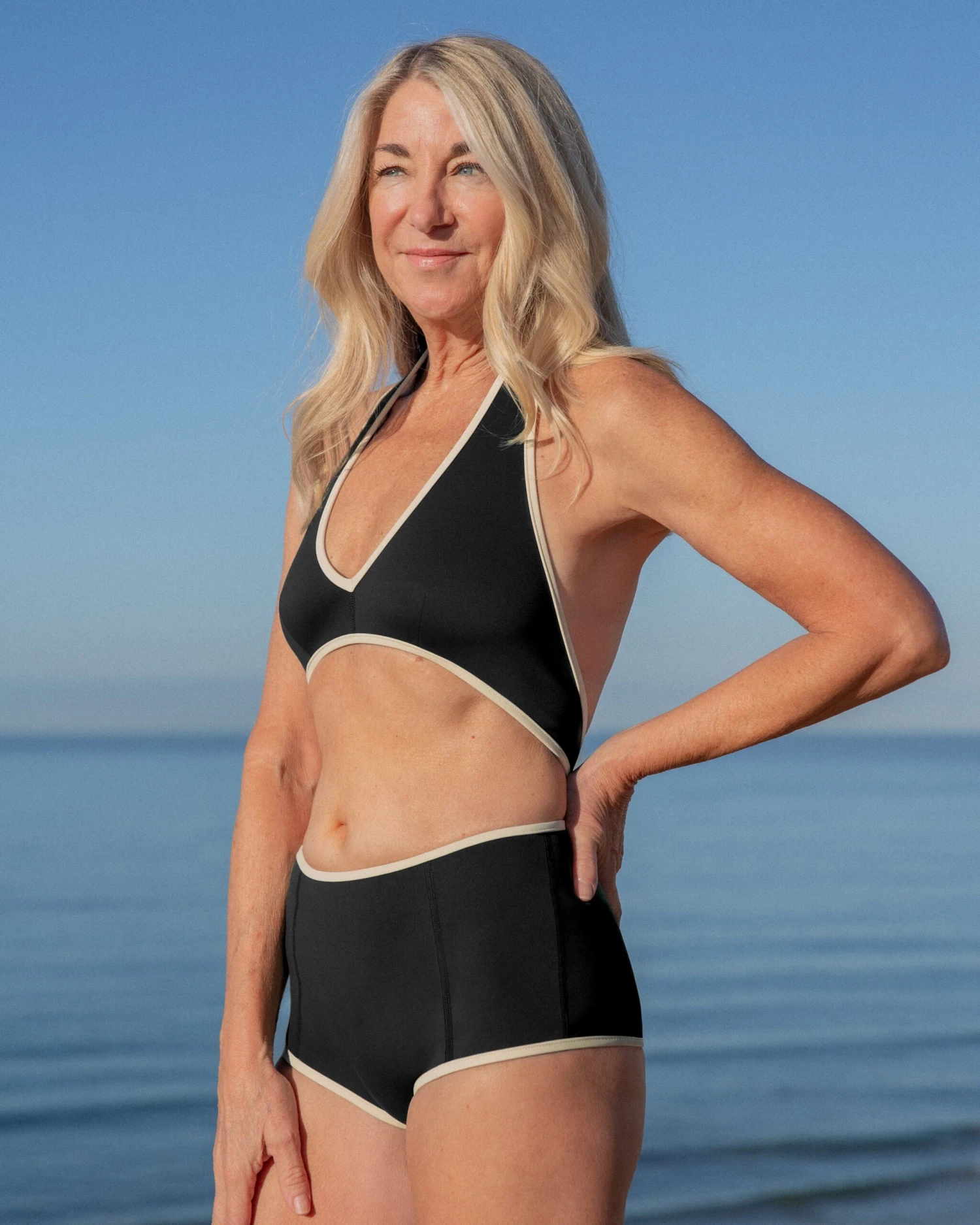 With the look of a chic high-waisted bikini with the security of a one piece, the Alice is bound to become a staple in your surf suit rotation.