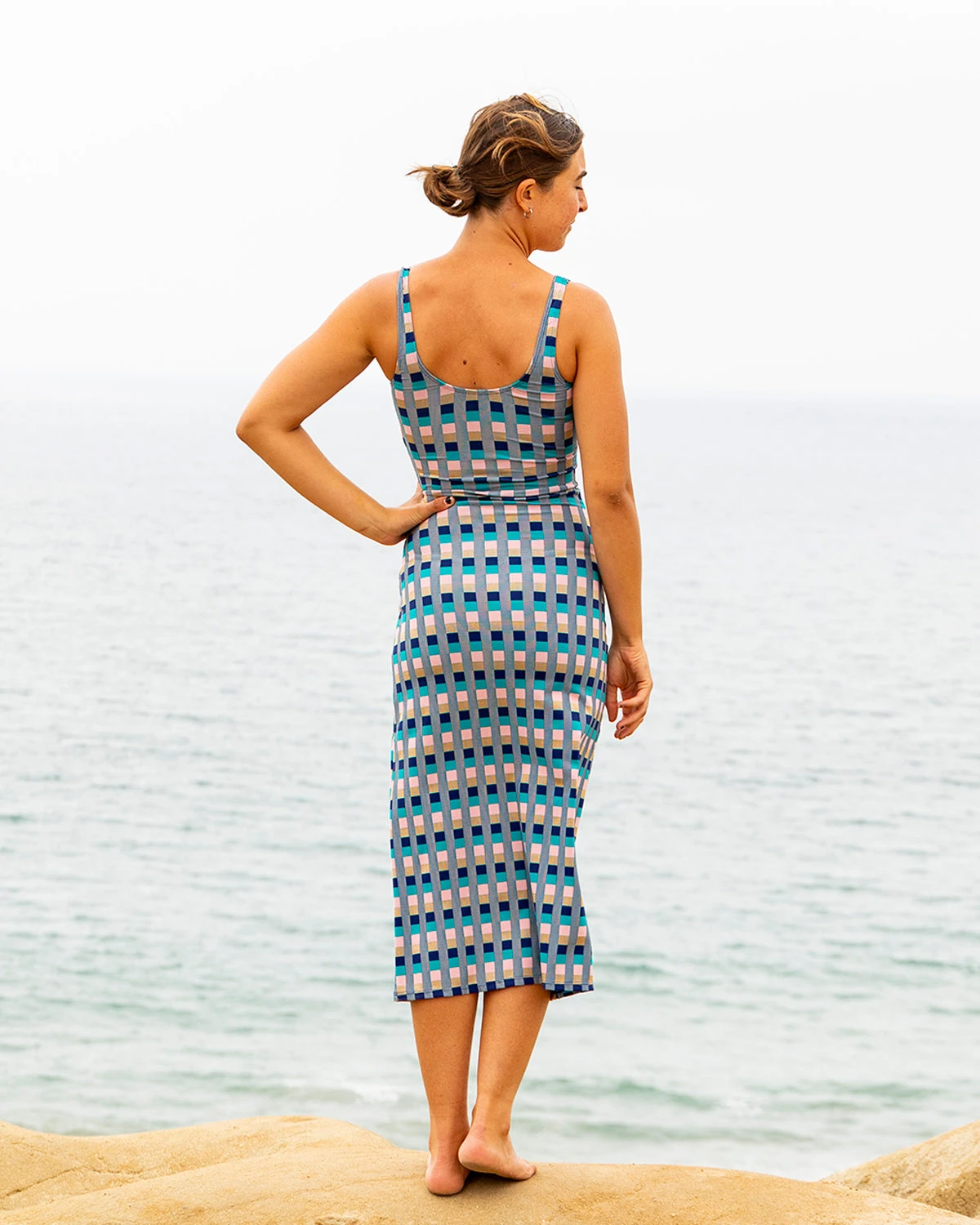 This lightweight slip dress is perfect for a relaxed yet stylish look. Its fitted silhouette and midi length make it a versatile piece for beach days or casual outings.