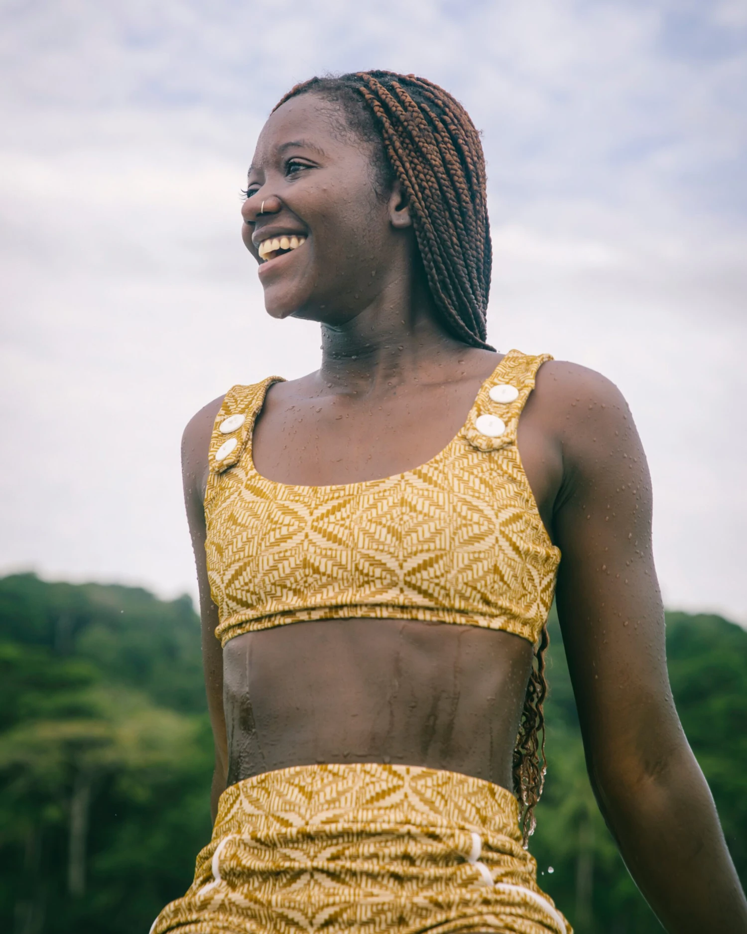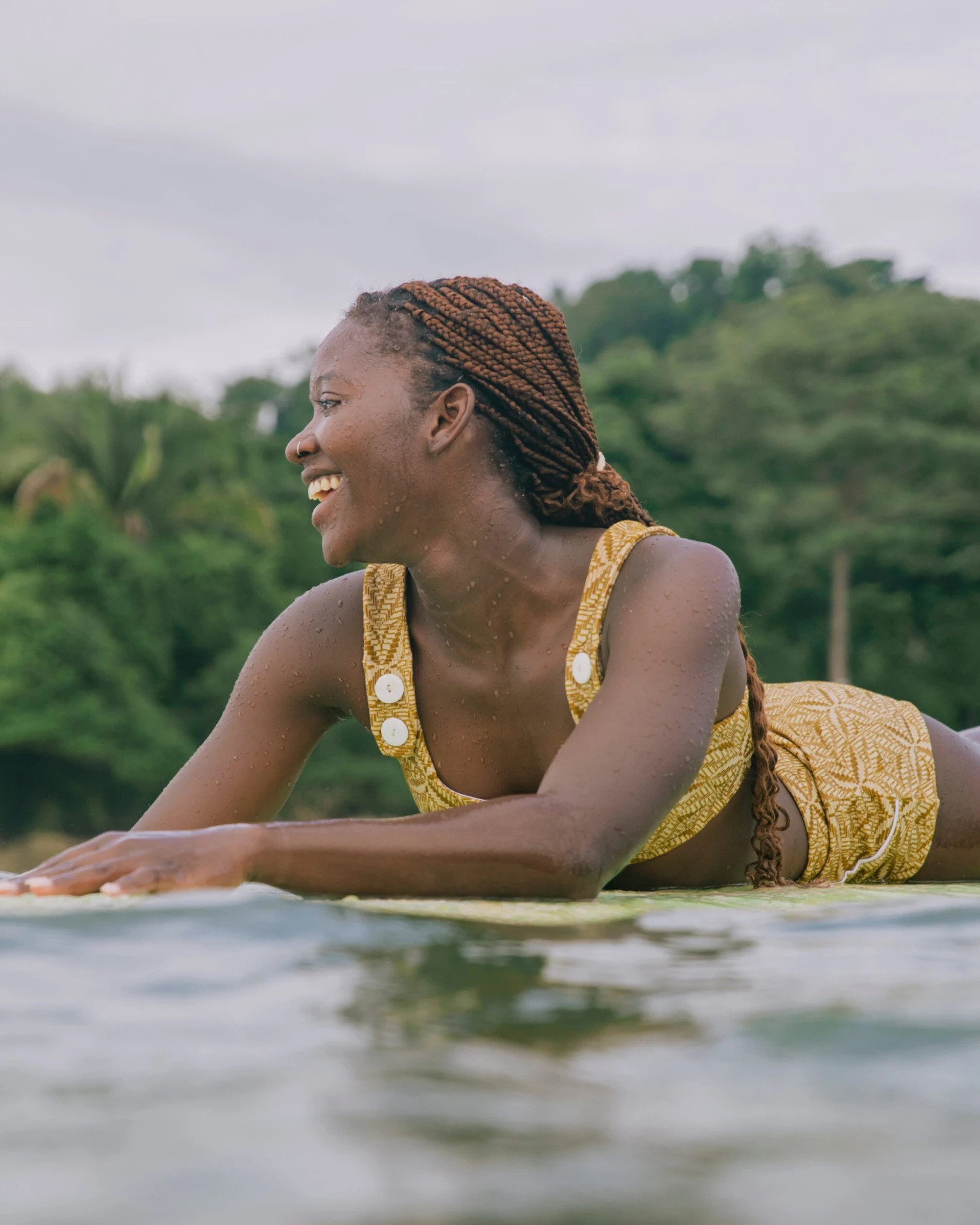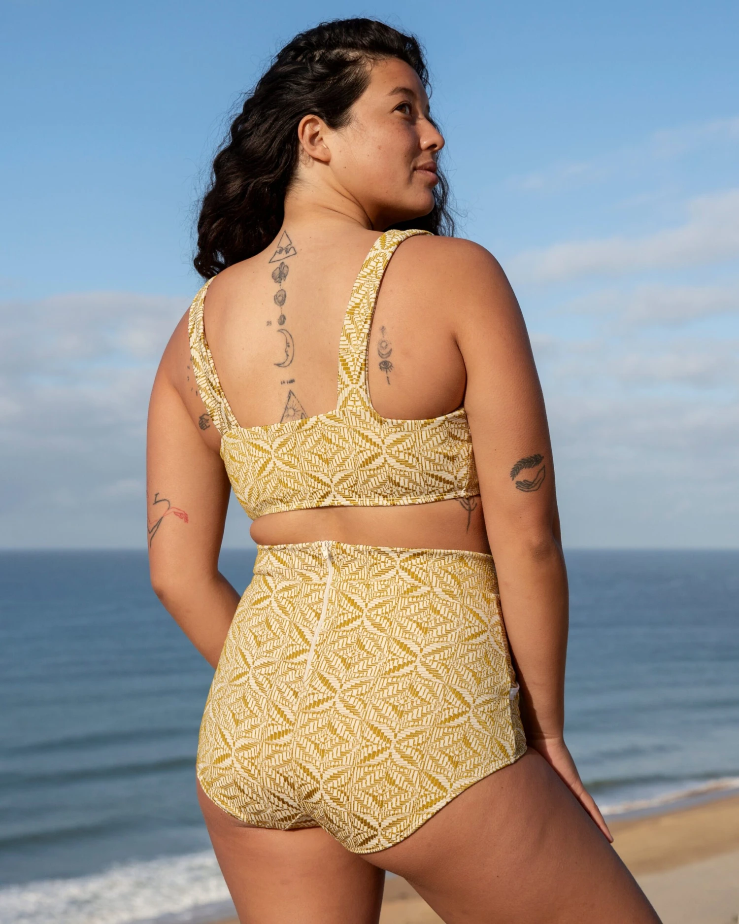 Under a striped beach umbrella or perched in trim, the Georgia Bikini Top radiates vintage femininity. With a delicate scoop neckline, fuller coverage, and supportive straps, this beauty is both comfortable and lovely.