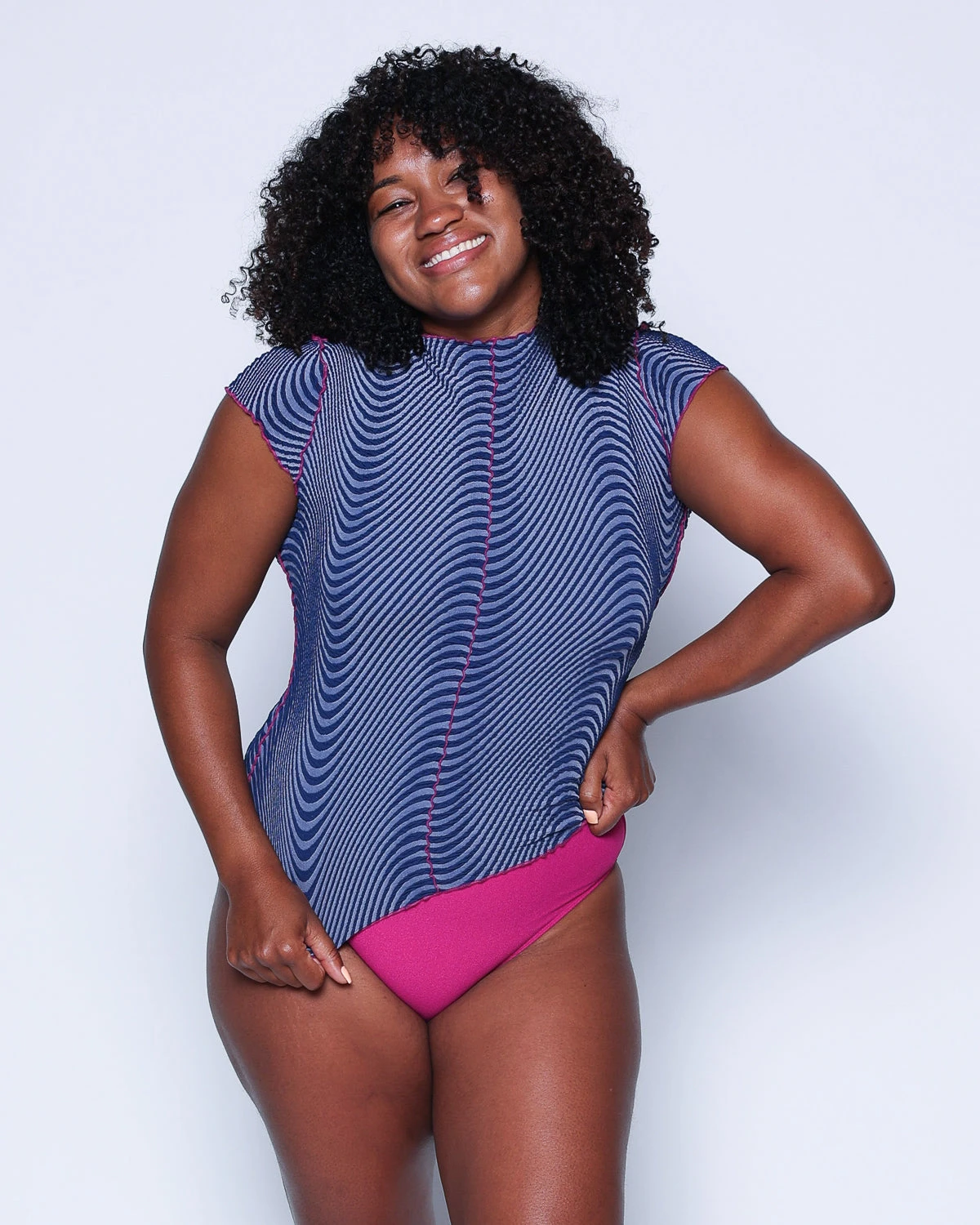 Sweeter than a post-surf sunset, the Leo top features a feminine lettuce hem and cute capped sleeves. Constructed from recycled texture fabric, Leo is the perfect in-between length: longer than our cropped rashguards, but shorter than the Doheny.