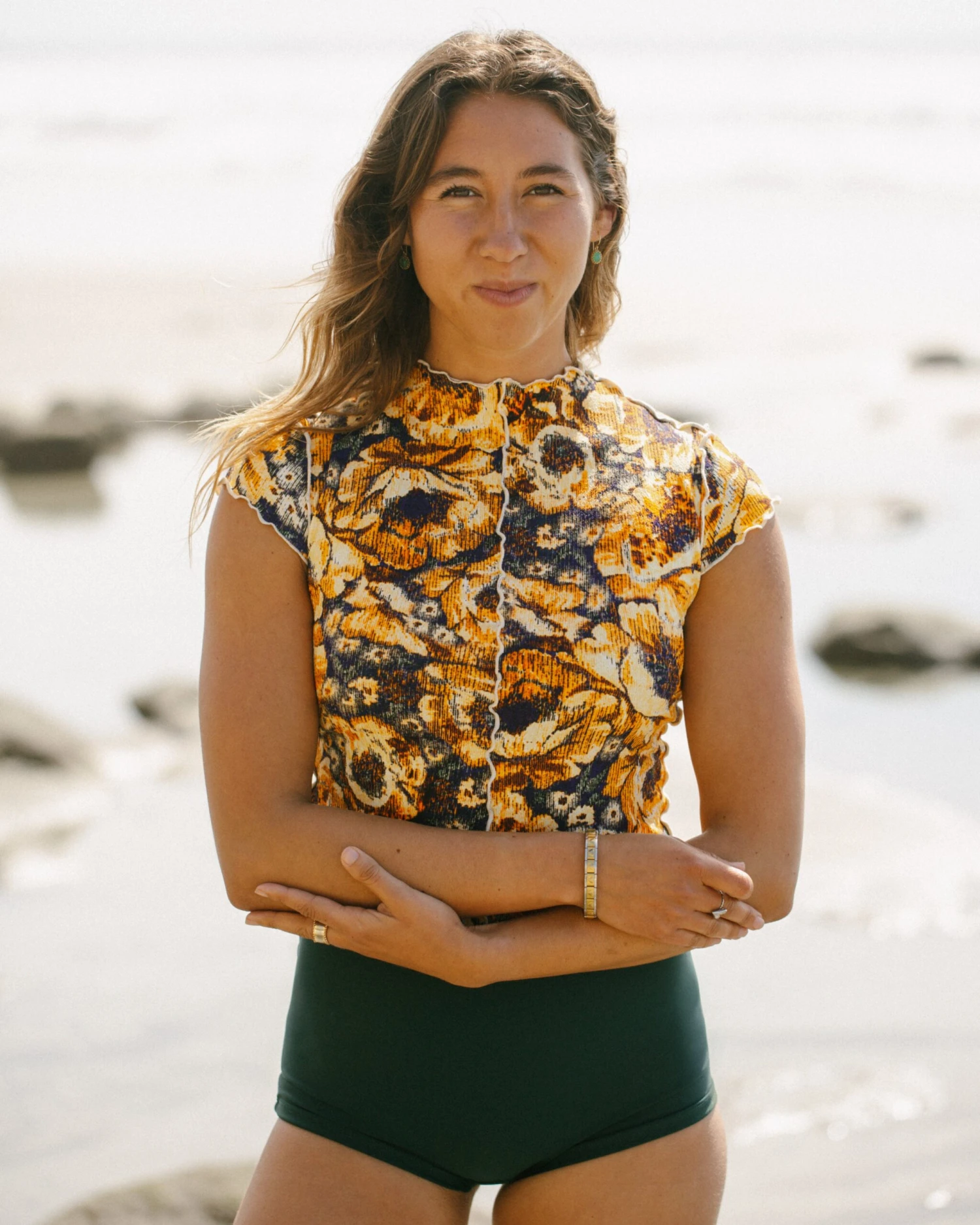 Sweeter than a post-surf sunset, the Leo top features a feminine lettuce hem and cute capped sleeves. Constructed from recycled texture fabric, Leo is the perfect in-between length: longer than our cropped rashguards, but shorter than the Doheny.