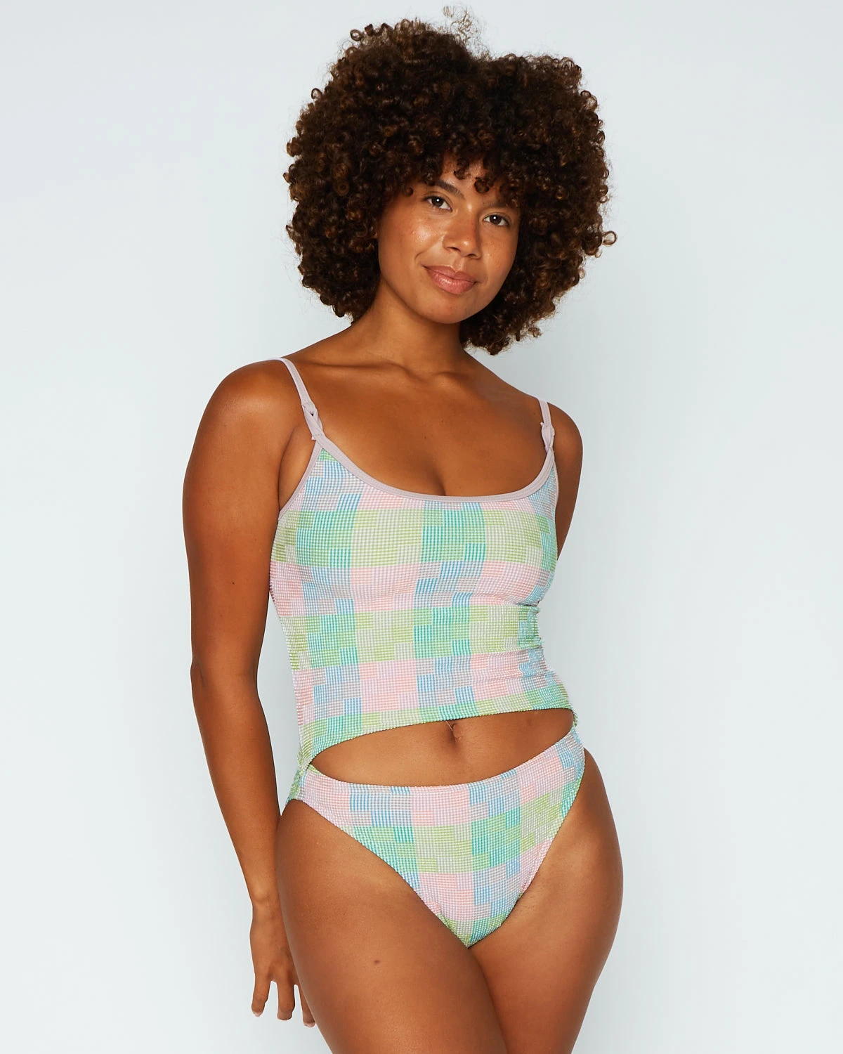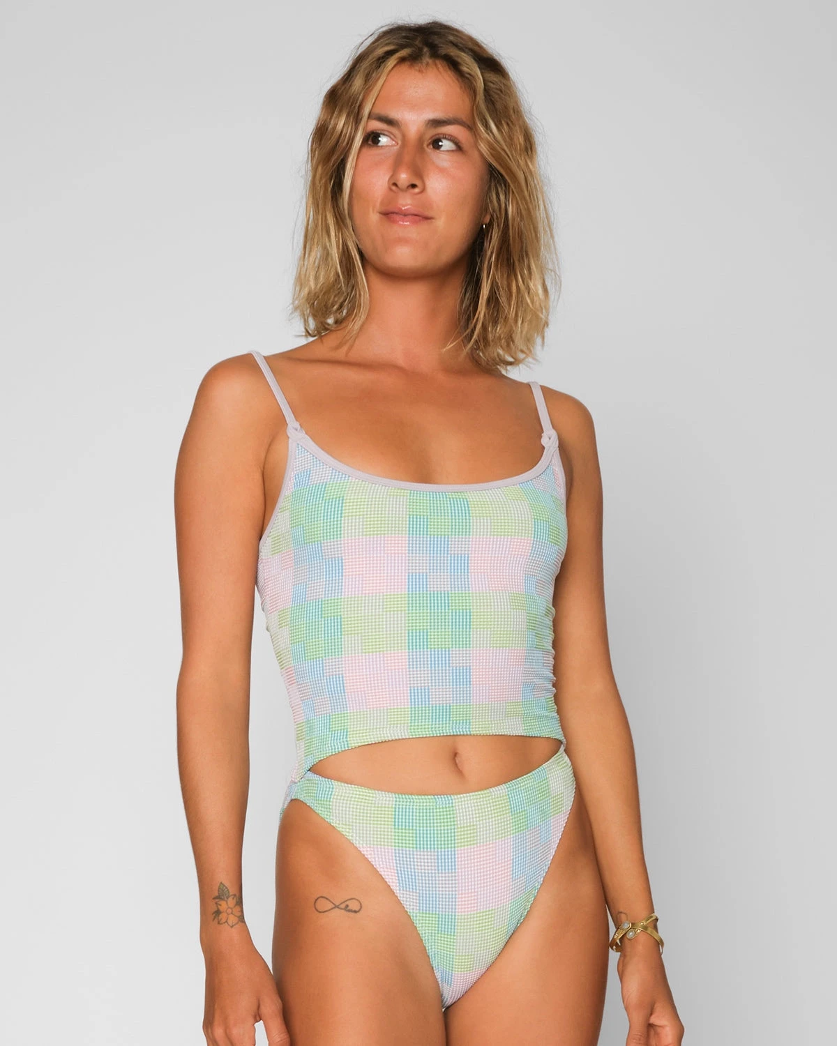 A new-wave sensation, Heyyy Macarena! Makala Smith x Seea’s latest signature suit collaboration makes waves in and out of the water. Built like a one-piece, with a flattering fit like a retro tank two-piece: this style is an effortless silhouette complimentary to a bevy of bodies with a feel-good fit featuring a scoop neck, a higher leg cut, and playful cutouts for extra flair!
