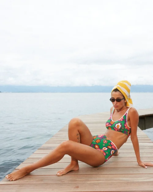 With thin adjustable straps and binding covering the interior seams for extra support, the Maggie is your new “comfy but cute” top you’ll wear from the surf to yoga to everywhere in between.