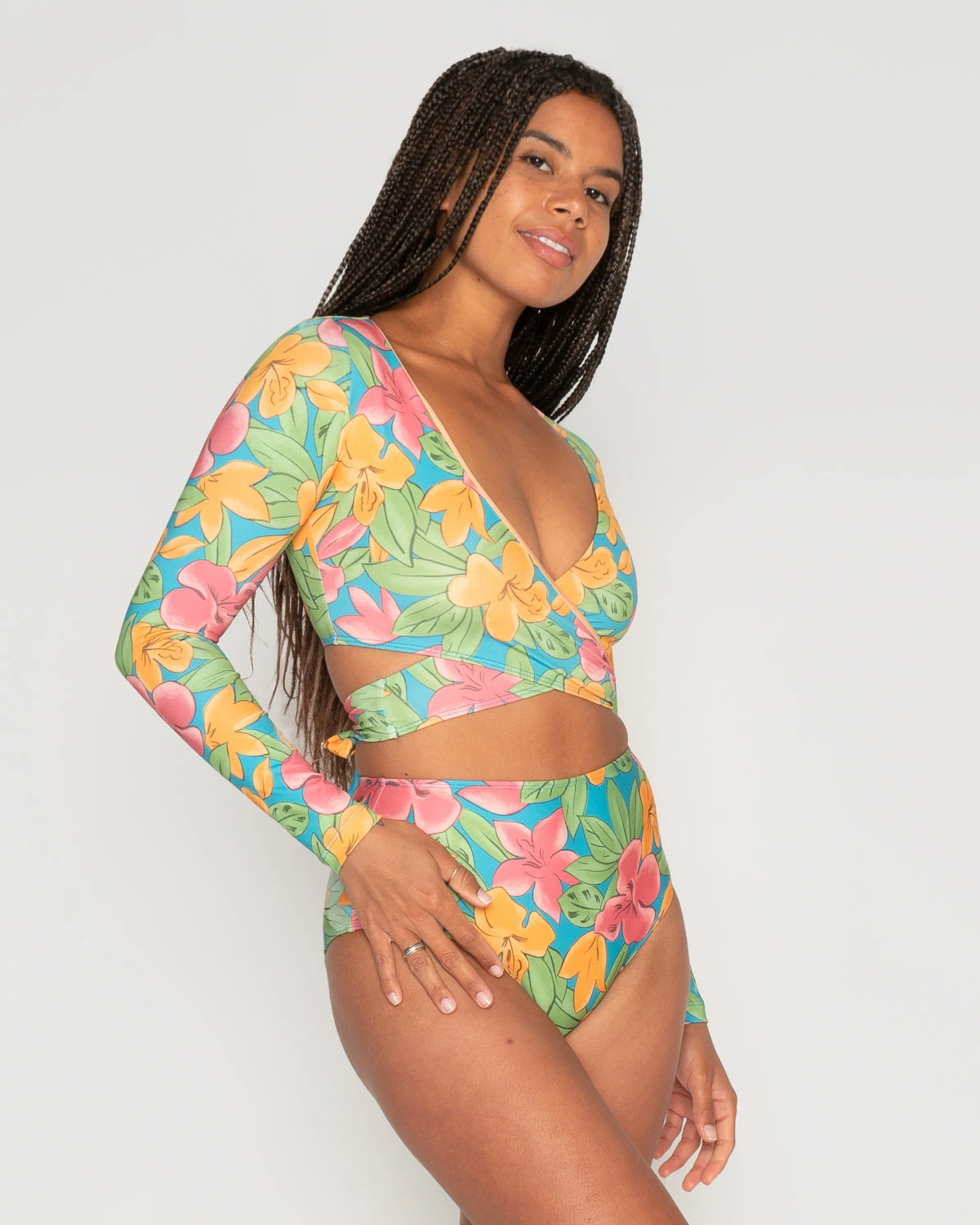 The Mundaka Wrap Top is the most chic of all rashguards, elegantly protecting your shoulders from the sun. One of our most versatile pieces, Mundaka has many moods: go sultry by pairing it with a bikini bottom (we recommend the Mundaka bottom!), covered up on top of a one-piece swimsuit, or make it ready-to-wear with a high waist skirt.