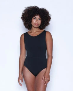 One-Piece glides past fading trends. Made for the playing in the waves, be supported with a cross back tie, and elegantly covered with a modest, yet feminine leg opening.