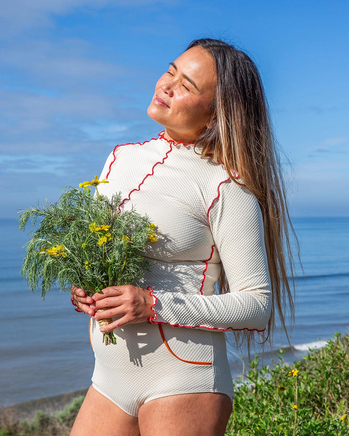 With its lettuce hem detail and thumb holes (you heard that right – thumb holes!), the Sila is our nod to Y2k fashion but in a functional, surf-ready way.