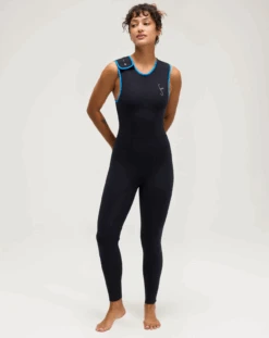 For cooler waters on beautiful sunny days, the Sydney 2mm natural rubber sleeveless Long Jane will be your new favorite companion. The sleeveless style with long legs provides just the right amount of core warmth and protection for sensitive ribs and knees while feeling lighter and freer than a full suit. A velcro and summary shoulder opening makes it easy to slip in and out of, plus darts on the waist mold for a snug and flattering fit. The knees are reinforced with extra padding for durability and comfort while knee paddling.