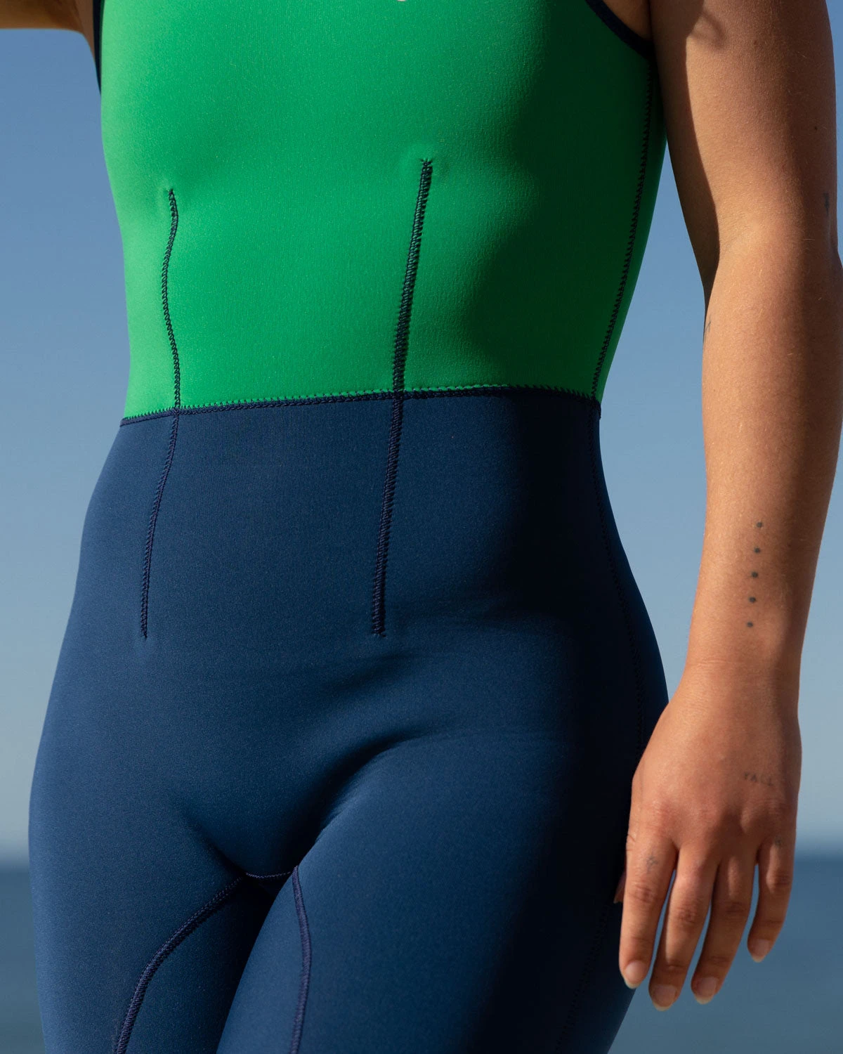 For cooler waters on beautiful sunny days, the Sydney 2mm natural rubber sleeveless Long Jane will be your new favorite companion. The sleeveless style with long legs provides just the right amount of core warmth and protection for sensitive ribs and knees while feeling lighter and freer than a full suit. A velcro and button shoulder opening makes it easy to slip in and out of, plus darts on the waist mold for a snug and flattering fit. The knees are reinforced with extra padding for durability and comfort while knee paddling.