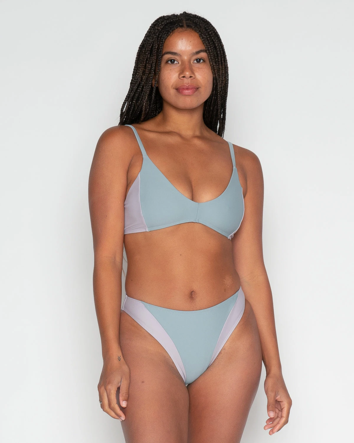 Striking color-blocking and elegant curved lines, the Vega Bikini Bottom features a vintage-inspired high leg cut and mid-rise bottom.