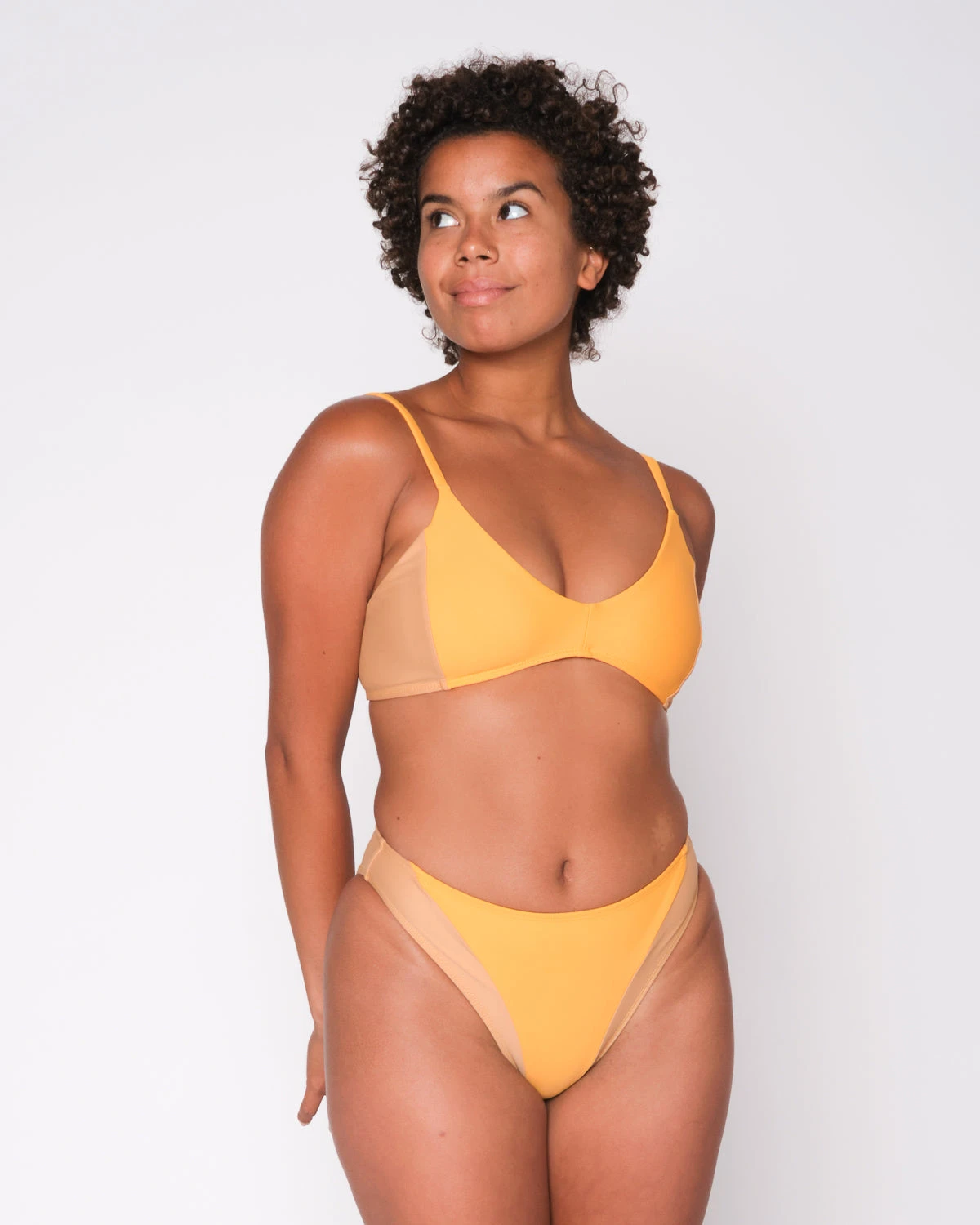 Striking color-blocking and elegant curved lines, the Vega Bikini Top is the epitome of ease. Fixed straps, clean finish edges and wide back provide modern comfort.